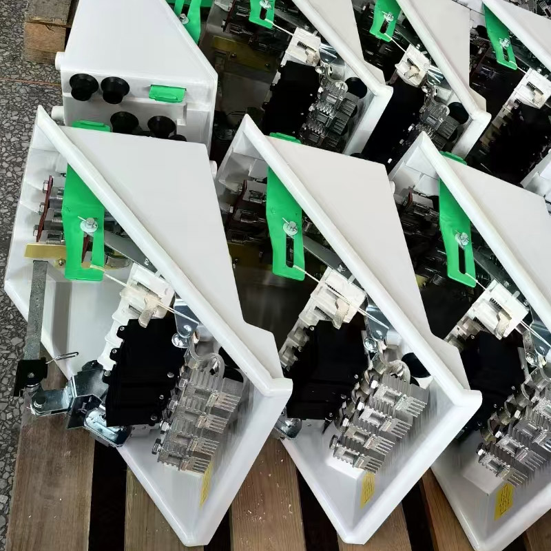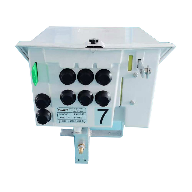 Эти устройства (4 полюса, 3 из которых защищены) отключаются в воздухе с помощью камер с металлическими перегородками для отключения дуги. Разомкнутый выключатель, контакт, который устанавливает электрическое соединение между нейтралью трансформатора и землей подстанции. Замыкающий выключатель, сплиттер ограничивает потенциальный рост нейтрали BT по отношению к земле масс для значения более 10 кВ. Автоматический выключатель установлен внутри погодоустойчивого армированного стекловолокном полиэфирного корпуса. Цифровые триггерные блоки Цифровой триггерный блок обеспечивает защиту для 3 трансформаторных калибров на полюсе (50 кВА, 100 кВА и 160 кВА), будь то обычные трансформаторы (без внутренней защиты) или новые трансформаторы с защитой (TPC). Селектор позволяет выбирать защитный калибр трансформатора. Микроконтроллер оценивает в реальном времени предполагаемую температуру трансформатора по току на всех трех фазах и внешней температуре окружающей среды. Последняя сама рассчитывается с помощью зонда и математической модели как функция также 3 фазных токов. В случае интеграции триггерного блока в полюсный выключатель старого поколения функция интегратора нагрузки, если она существует, будет заблокирована.